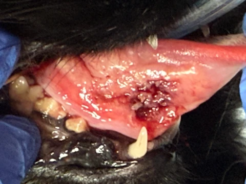 - I examined her mouth and caught a glimpse of an ulcerated area
